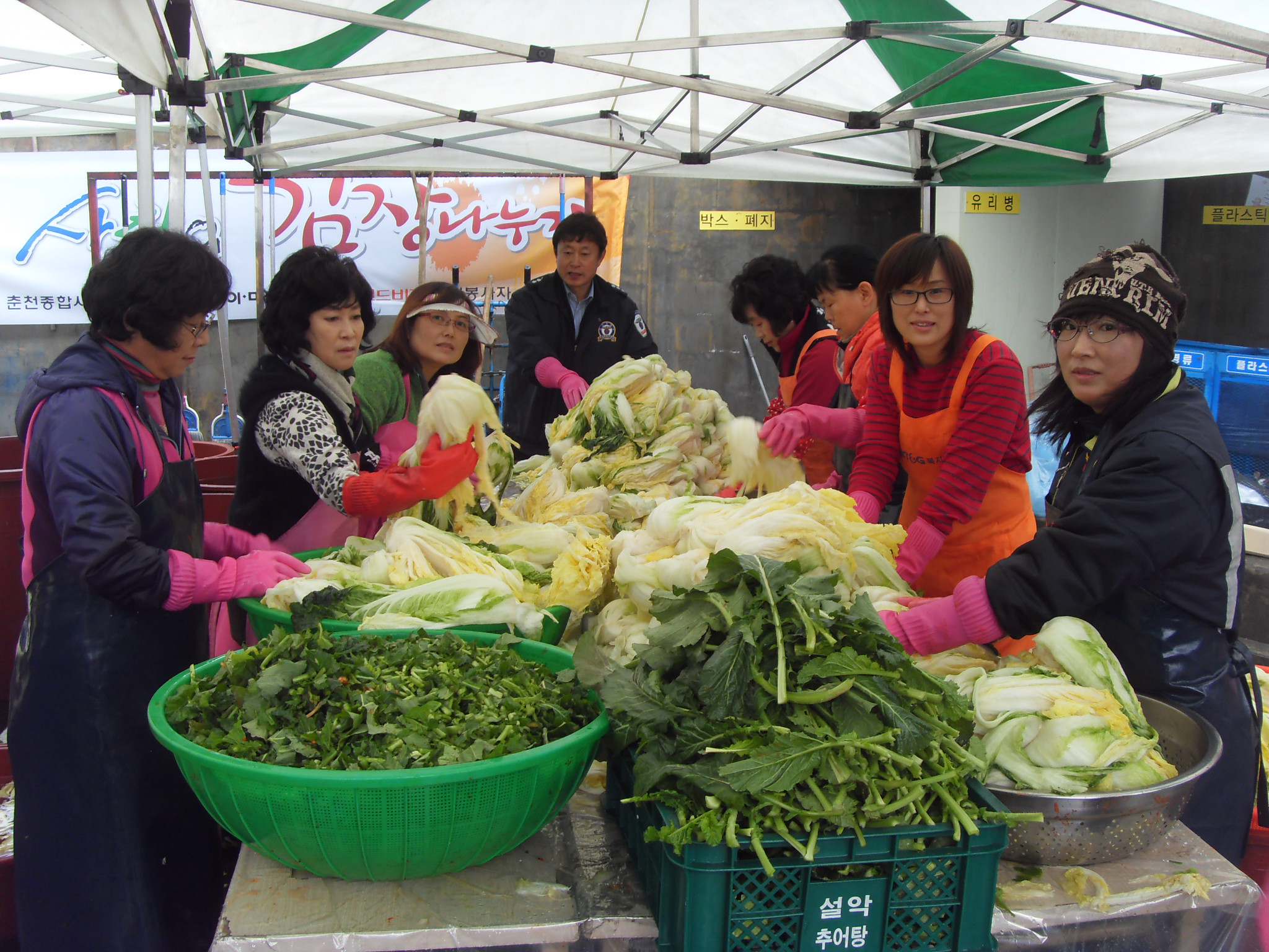 28일 월드비젼에서 2천 포기의 김장을 했습니다 이마트직원들과 춘천시여성의용소방대 대원이 함께 힘든 김장을 했습니다. 올해는 계속 되는 김장 봉사에 대원들이 많이 힘들었을겁니다 . 항상봉사을 하시는 분만 늘 참석해서 너무 아쉽습니다. 여러대원이 함께 했으면 얼마나 좋을까? 배추양념에 편육,막걸리 한잔,뜨끈뜨끈한 오뎅 먹을것 풍족,웃음만말 힘은 들어도 너무도 재미있었던 김장봉사였다고 생각합니다 수고~~~ 많으셨습니다