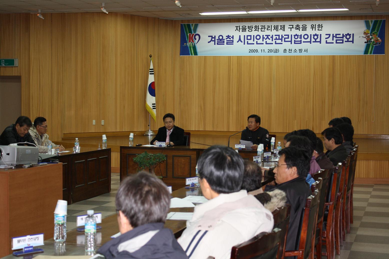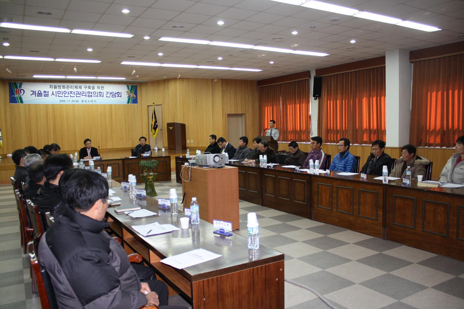 - 춘천소방서(서장 유용현)는 11.20(금) 오후2시 본서 대회의실에서 민간자율에 의한 안전관리체제의 조기 정착 도모를 위해「2009년 겨울철 시민안전관리협의회」를 개최하였다.