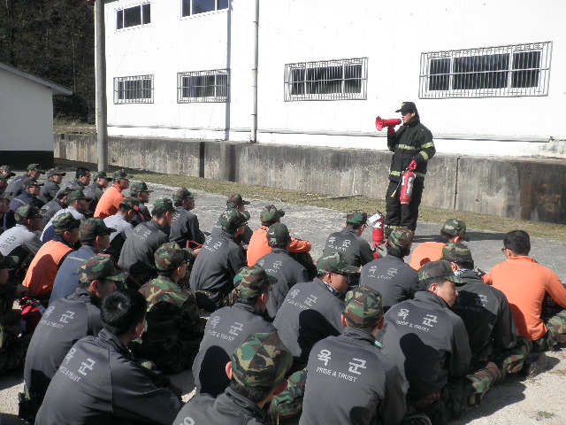 실제 상황하 전장병 출동 및 화재진압요령 숙달, 소화기 사용요령 및 화재 예방 방법 이론교육