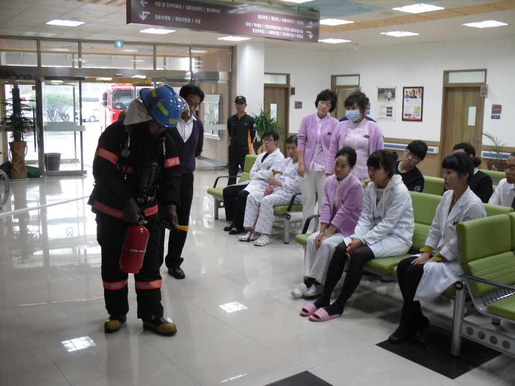 후평119안전센터(센터장 정재덕)는 2010. 10. 20. 공공기관합동훈련의 일환으로 10:00~ 강원도선거관리위원회, 14:00~ 춘천시노인전문병원, 16:00~ 한전KDN강원지사 에 대한 소방훈련을 실시하고 소화기, 옥내소화전 등 자체소방시설에 대한 사용법에 대한 교육을 실시하여 관계자들에게 화재에 대한 경각심 고취 및 화재대응에 이상이 없도록 지도하였습니다. 시민여러분께서는 안심하고 방문하세요