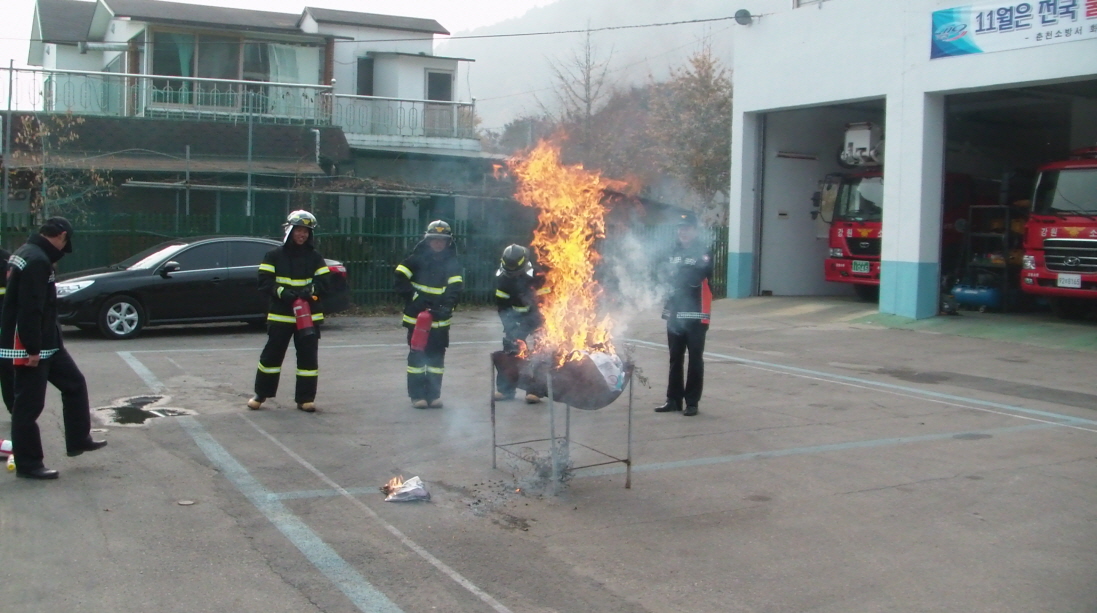 화천119안전센터(센터장 한광모)는 소방공무원 신규임용자에 대한 소화기 체험훈련 등
