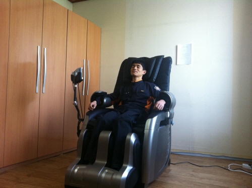 이 안마사가 피로가 누적된 직원들의 근육을 두드리거나 주물러서 혈액순환을 원활히 하고 육체피로를 경감시켜주어 밤낮 가리지 않고 화재 및 구조구급 출동을 하는 직원들은 더욱 더 주민들을 위해 발로 뛸 수 있게 되었습니다.