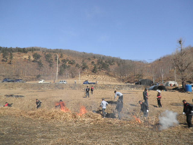 등짐펌프와 갈퀴 등으로 진압해봄으로써 봄철 산화에 신속히