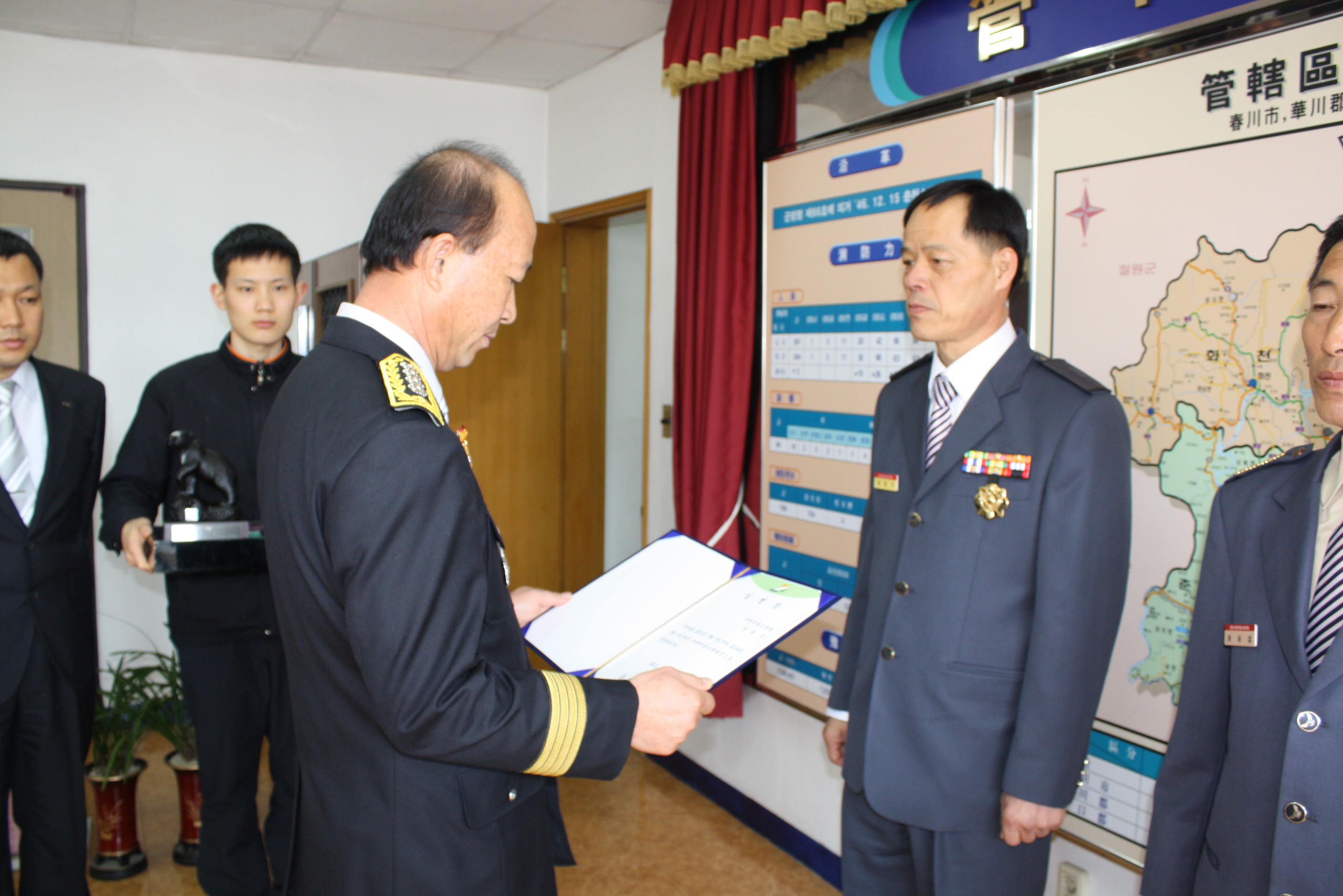이날 취임하는 윤원구 대장에게는 임명장을 수여하고, 이임하는 송승섭 전 대장에게는 도지사 공로패 및 춘천소방서장 감사패를 전수했습니다.
