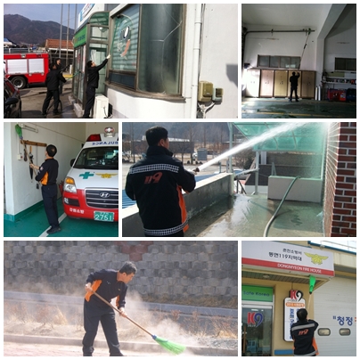 양구119안전센터(센터장 장춘식)는 2011.03.18(금) 봄맞이 청사 대청소를 실시하였습니다. 청사 대청소로 보다 밝고 산뜻한 청사환경을 만들수 있게 되었습니다. 보다 깨끗해진 청사 환경만큼 쾌적하고 청결한 소방의 이미지를 만들수 있도록 하겠습니다.