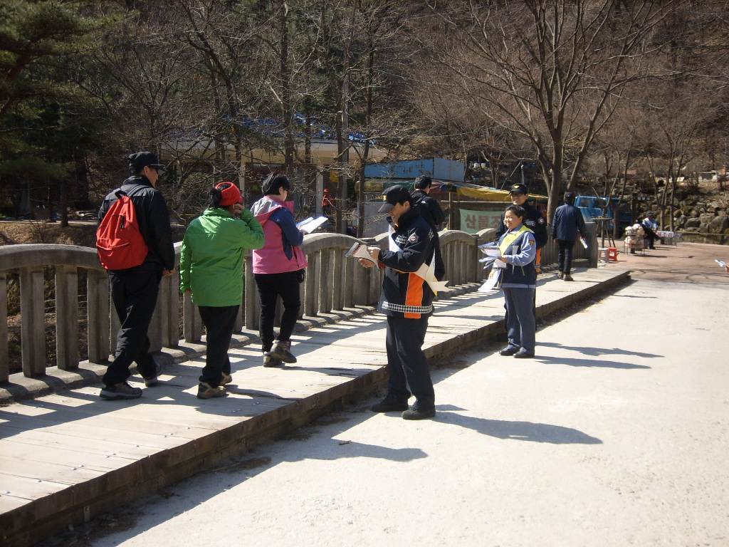 북산남녀의용소방대원 60여명과 함께 어깨띠를 착용하고 전단지를 배부하면서 산불예방의 중요성을 홍보함은 물론, 산불 취약지점을 찾아 주변 정리를 하고 청평사 주민들에게 산불조심의 당부도 잊지 않았습니다.