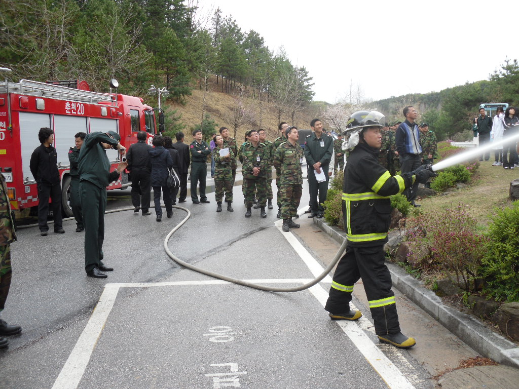 춘천소방서 후평119안전센터(센터장 정희정)는 2011. 4. 27 15:00~17:00까지 춘천국군병원 본관동 / 연병장에서 병원 전 장병 및 군무원 , 입원환자들을 대상으로 화재예방교육 및 화재진압훈련을 실시하였습니다