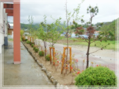 에서 식목일에 심었던 산철쭉과 벗나무가 5월