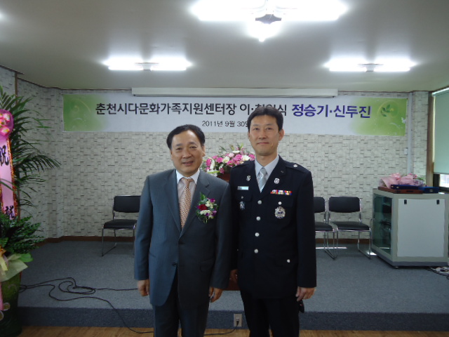 효자119안전센터(센터장 김영태)에서는 2011.9.30 오후2시 춘천시 다문화가족 지원센터장님의 이취임식에 참석하여 춘천소방서장님의 축하화환을 전달하고, 다문화가정에 대한 화재 예방을 당부하였습니다.