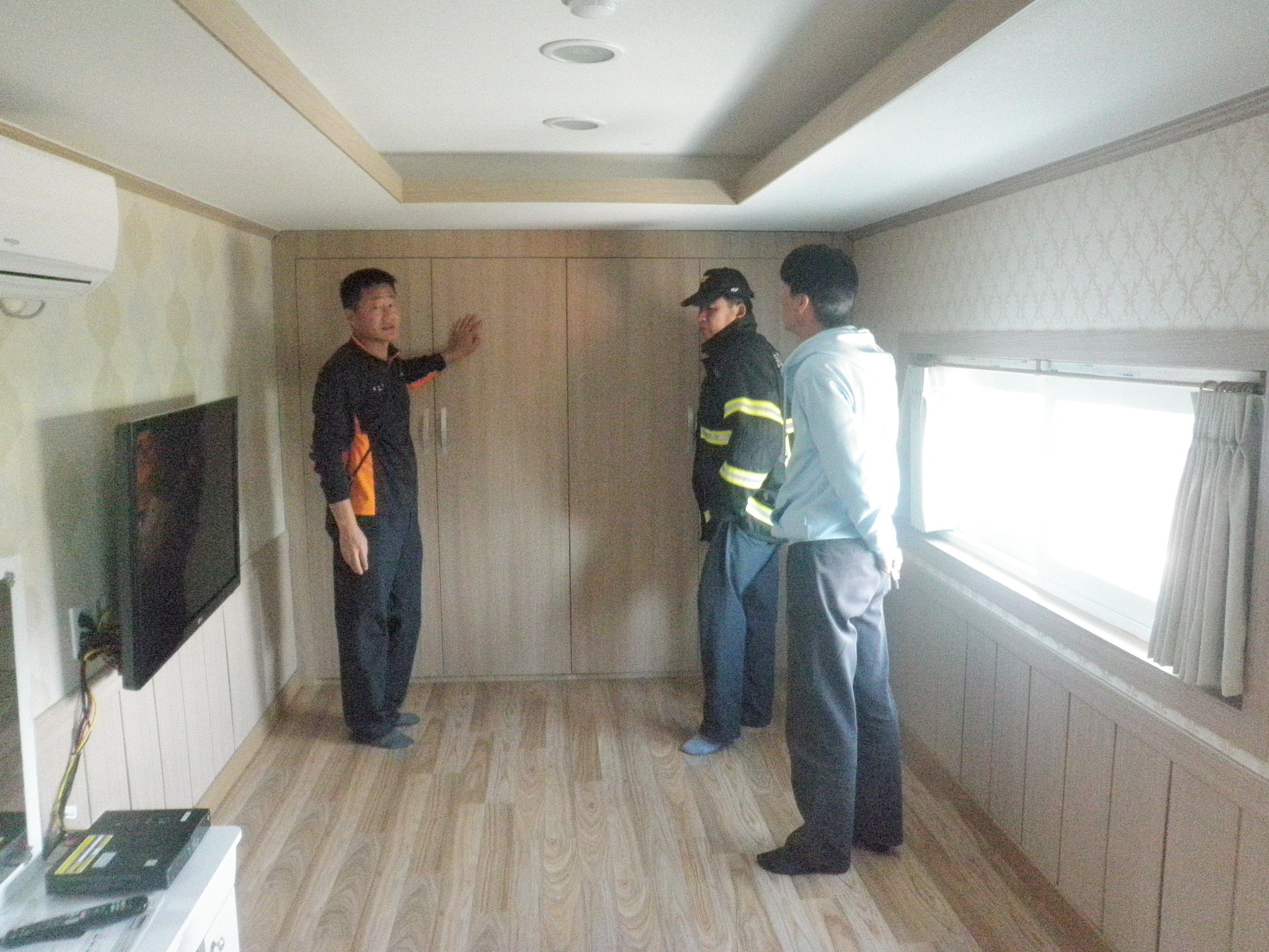 직원들은 펜션의 구조와 응급상황시 소방차량의 진입로 등에 관하여 토론을 하였습니다.