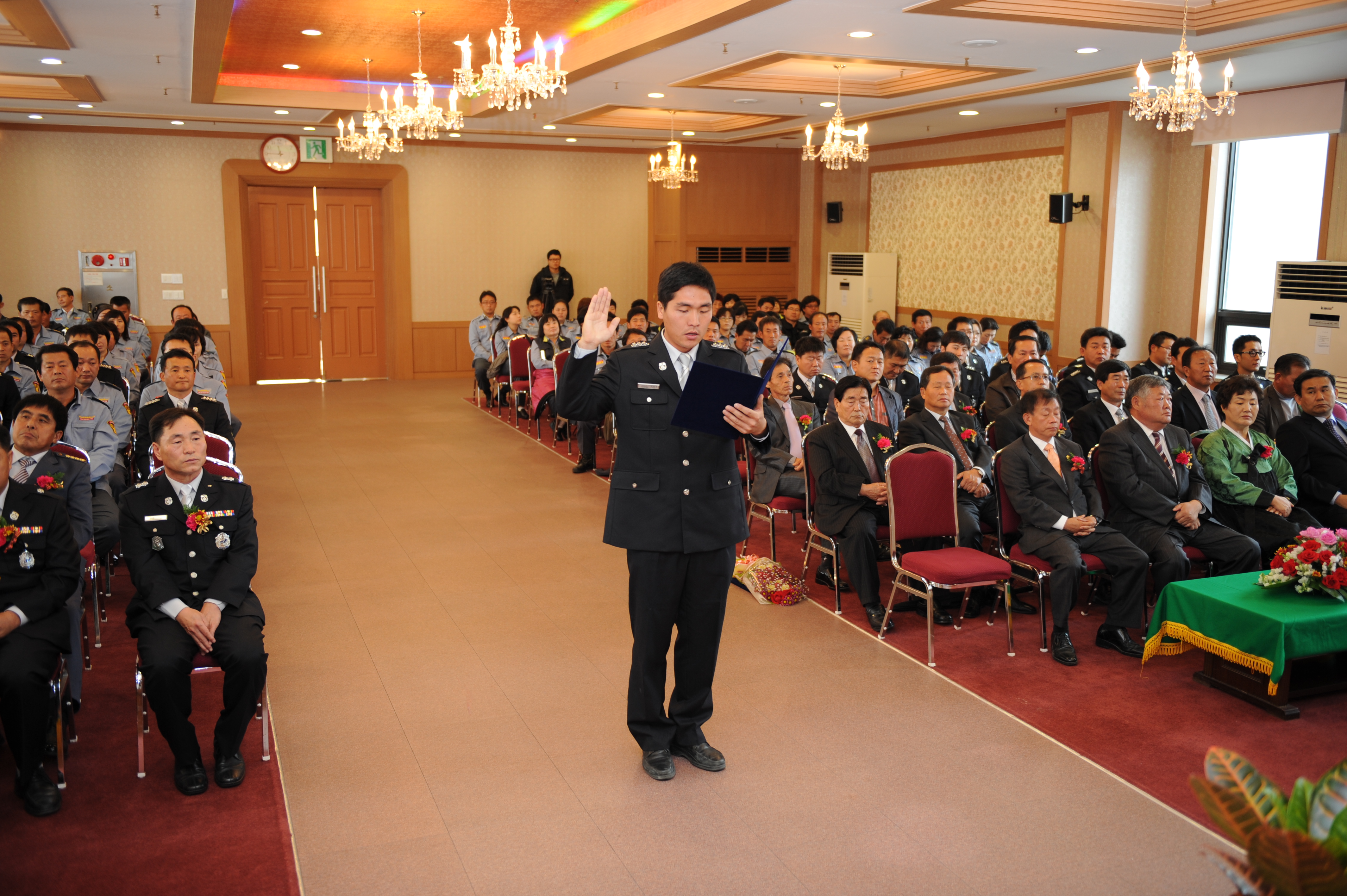 참석한 가운데 기념식을 진행하고 화천119안전센터 전직원과 의용소방대원과의