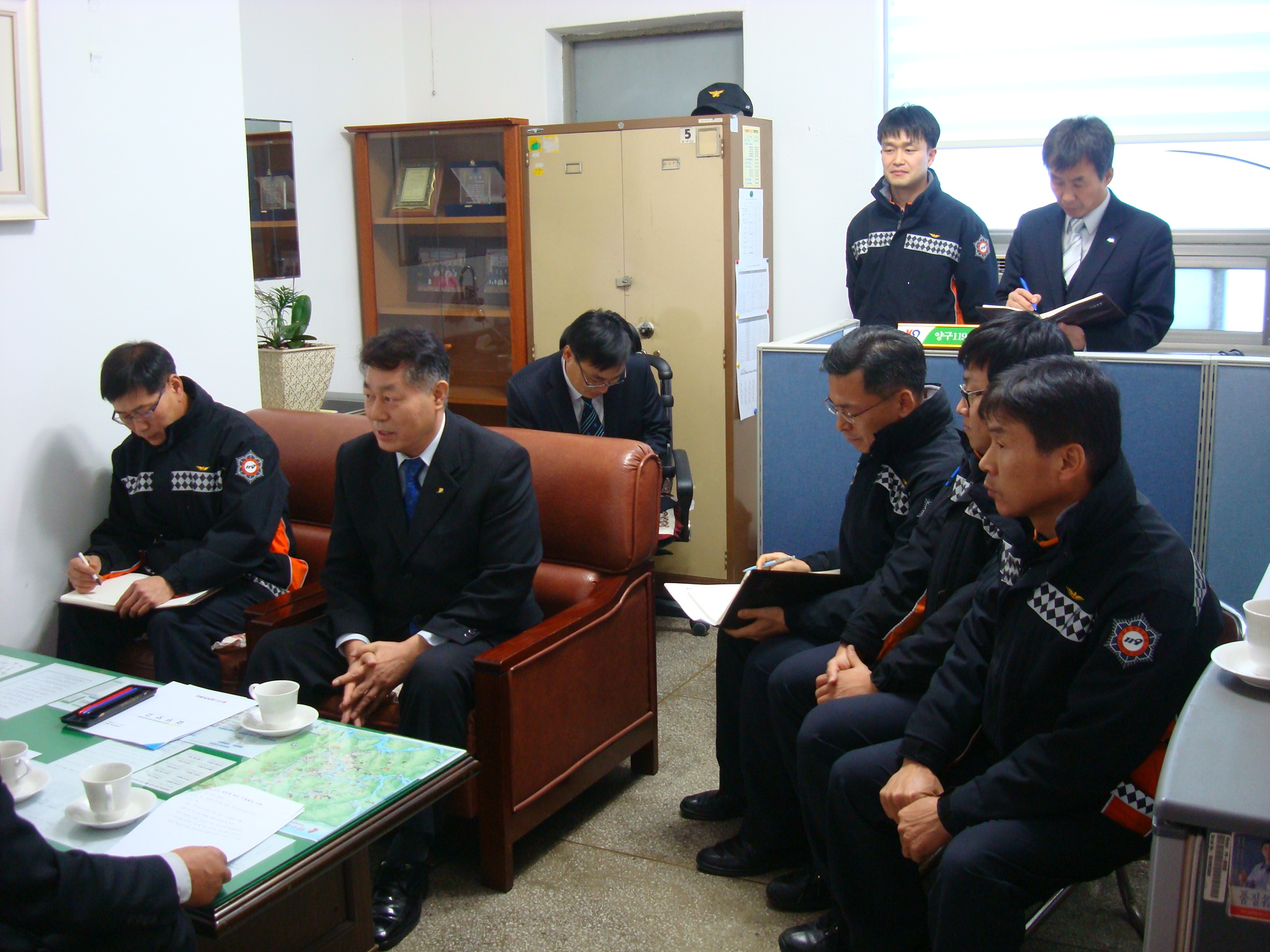 오대희 소방본부장은 12월 22일(목) 15시 50분경 양구안전센터(센터장 정종호)를 방문하여 관내 업무현황 보고 및 직원 등 소방가족에 대한 격려와 안전사고 없는 현장 업무에 대해 당부 하셨습니다.
