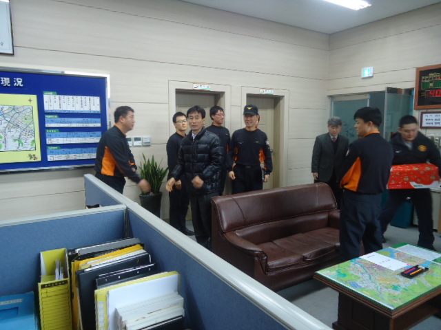 춘천시장(이광준)께서 금일 오후 4시경 효자119안전센터(센터장 김영태)를 방문하여 1년 365일 쉼없이 화재,구조,구급 업무에 힘쓰는 대원들에게 “국민에게 가장 신뢰 받는 조직이다” 라고 격려와 노고를 치하 하였습니다.