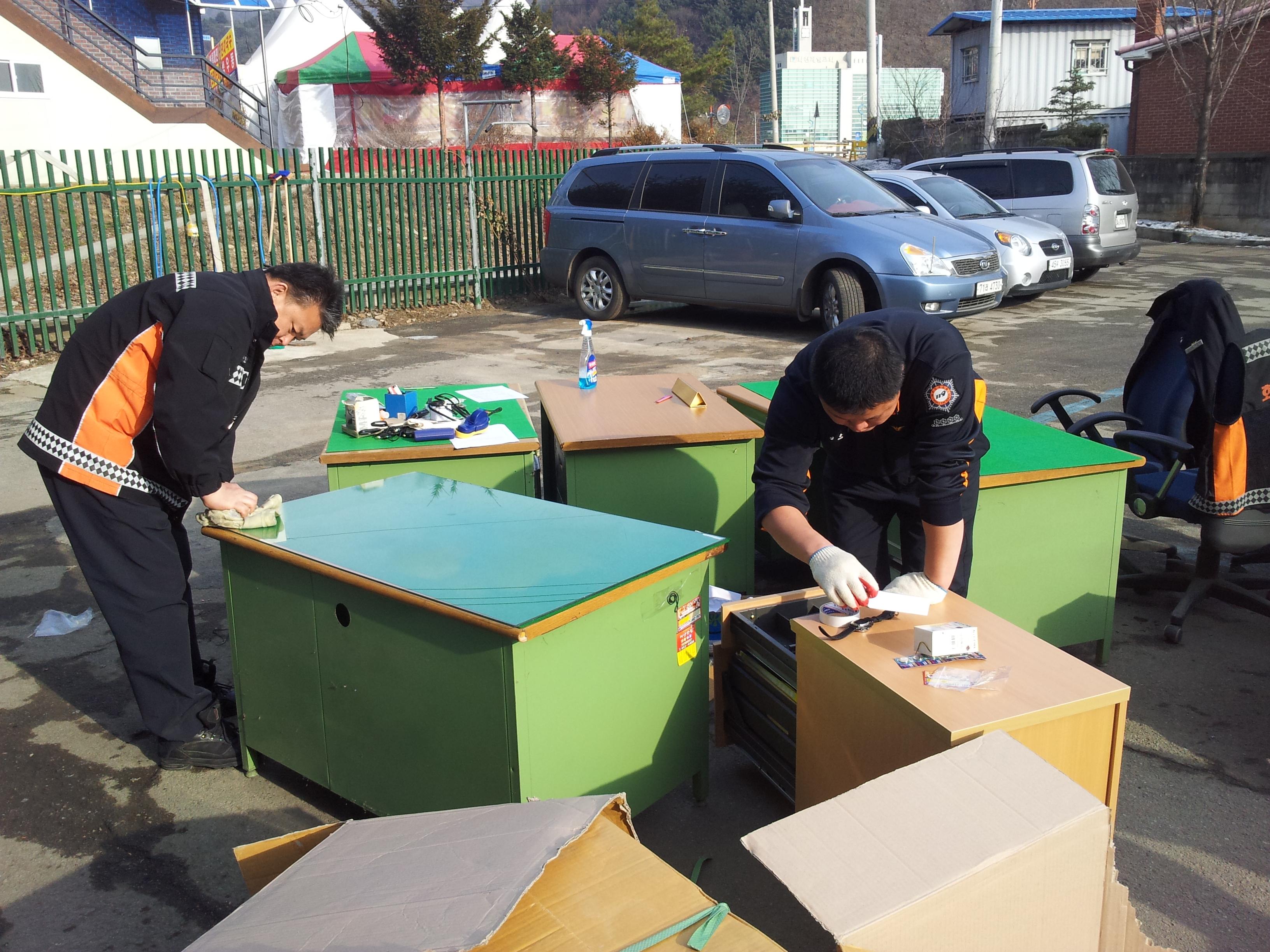 금일 화천119안전센터(센터장 신상건)에서는 춘천소방서에서 보내주신 새로운 책상으로 책상을 교체하는 작업을 하였습니다.