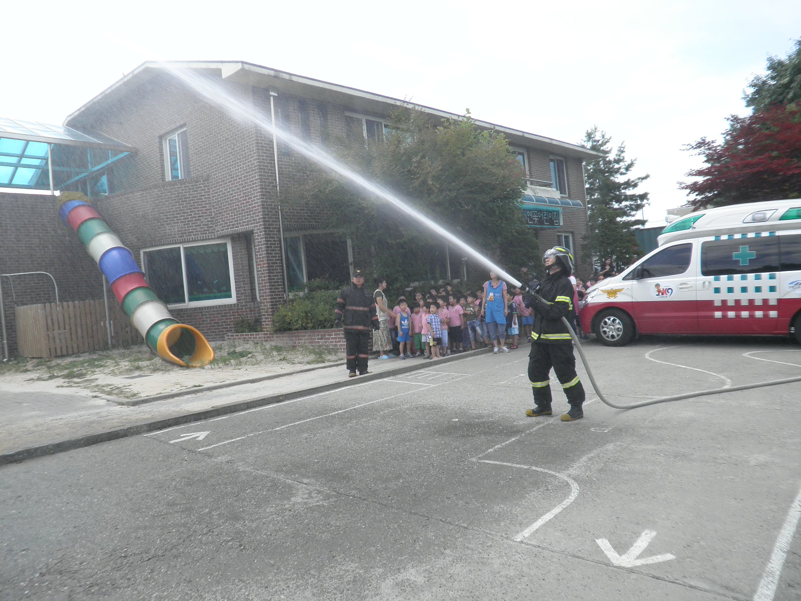 금일(2012.06.26) 석사센터(센터장 소방위 이봉춘) 에서는 연꽃어린이집에서 공공기관합동 소방훈련을 실시했습니다. 교사들을 상대로는 화재발생시 대처요령 및 소화기 사용법에 대해서 교육을 실시했고 어린이들을 상대로는 간단한 소방교육과 아울러 소방차와 구급차 견학을 실시했습니다. 아이들과 함께한 즐거운 시간이었습니다.
