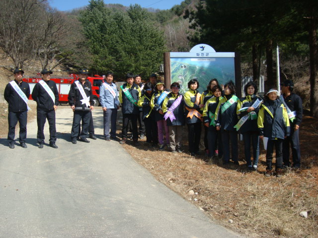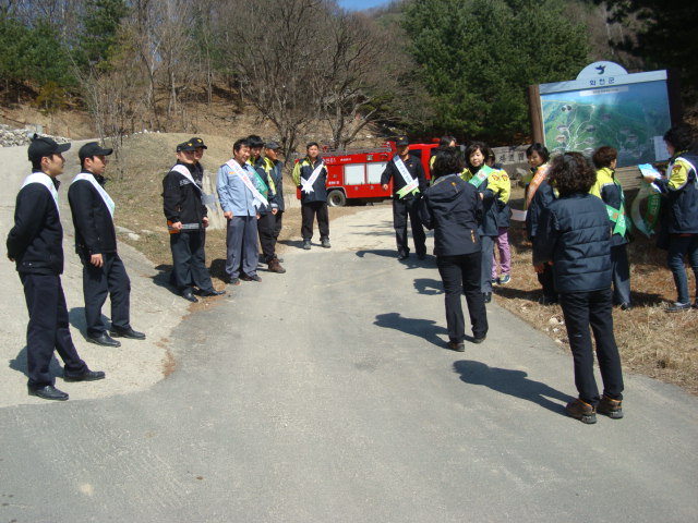 사내센터 직원 및 사내면 남.여 의용소방대는 창안산 입구에서 오는 등산객들로부터 산불예방 전단지를 배부하고 라이터등 화기 취급을 자제하는 교육을 실시하였습니다.