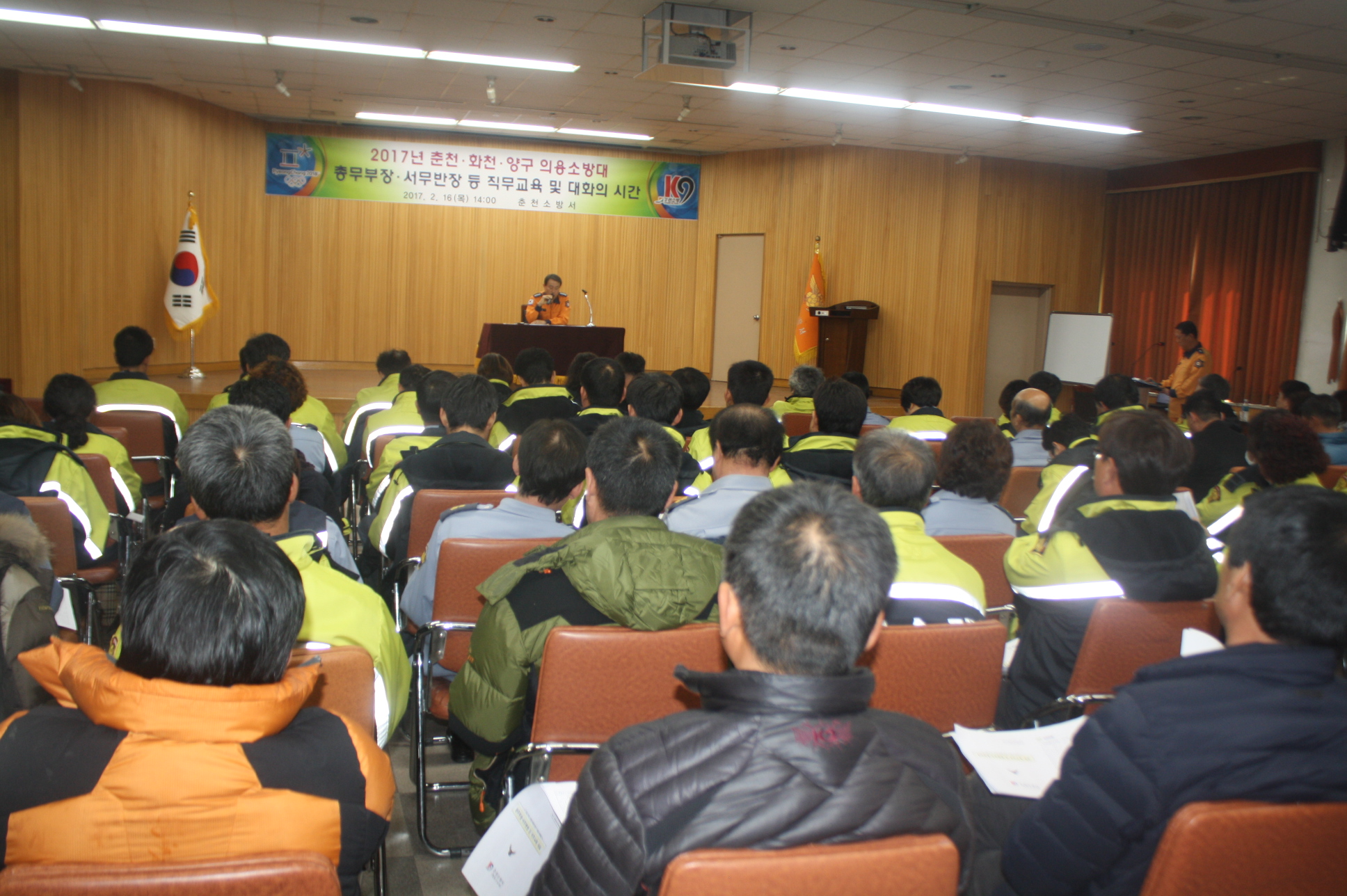 춘천소방서(서장 안중석)는 16일 오후 2시 본서 대회의실에서 의용소방대 120명이 참석한 가운데 의용소방대 직무교육 및 간담회를 실시했다.