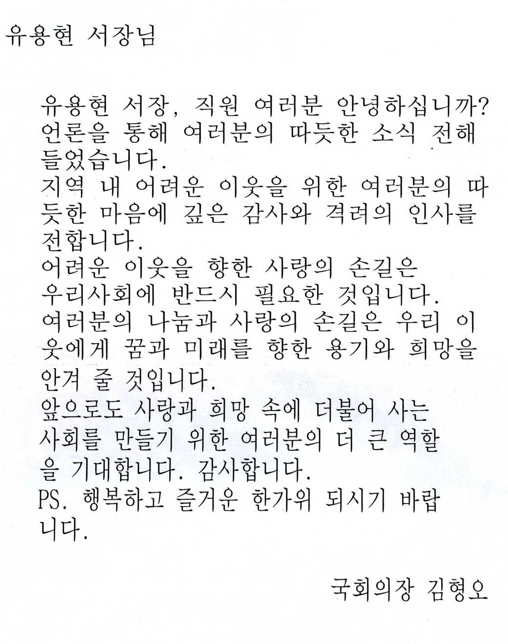국회의장 격려 서한문