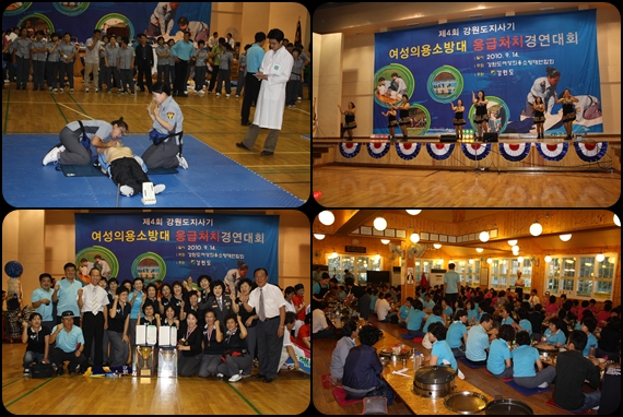 춘천소방서(서장 조완구)는 9.14 원주 문막농민문화체육센타게서 개최된 “제4회 강원도지사기 여성의용소방대 응급처치경연대회”에 참가했습니다.