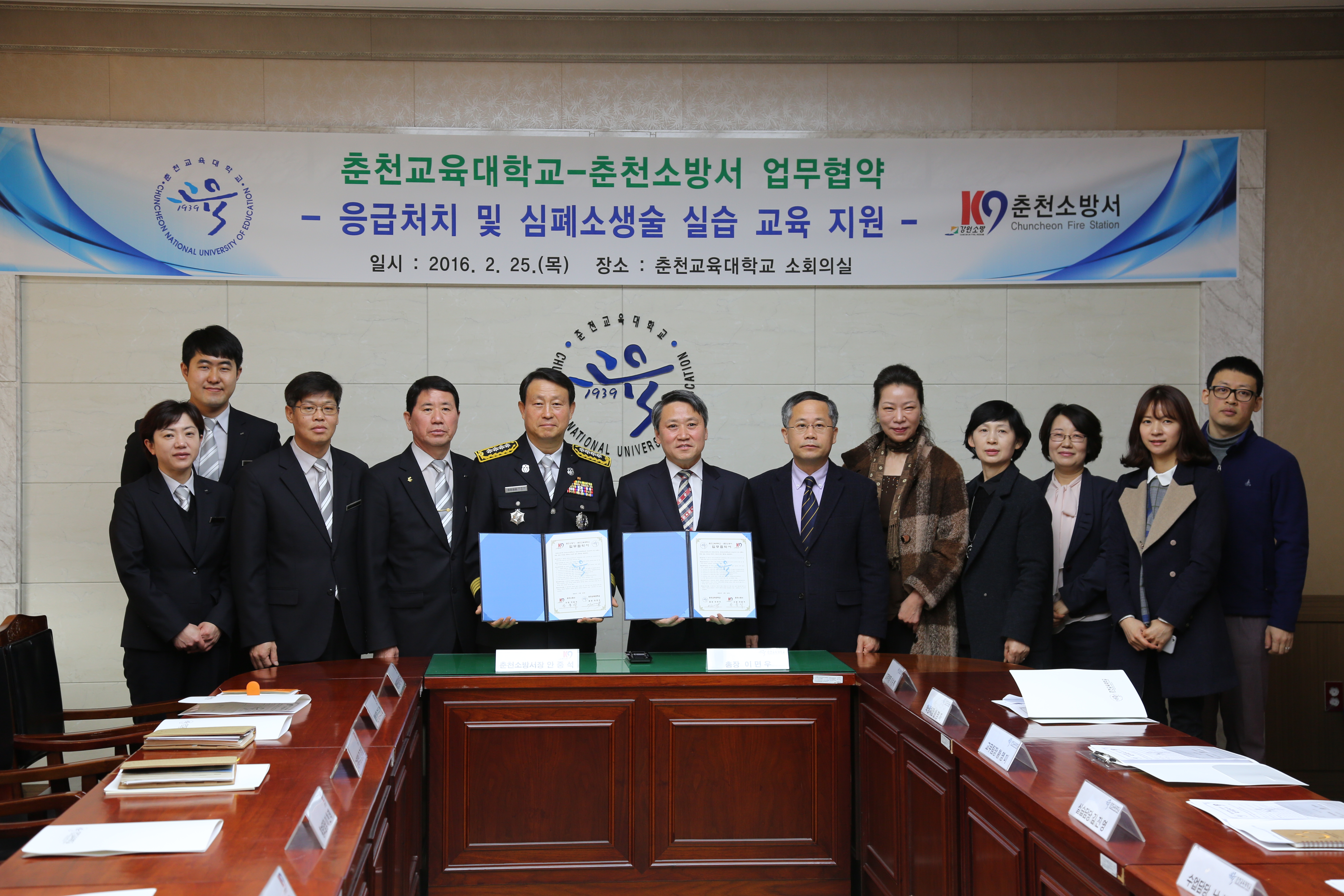 지난 25일(목) 춘천교육대학교 본관 소회의실에서 춘천소방서와 춘천교대 간의 업무협약식이 있었다.