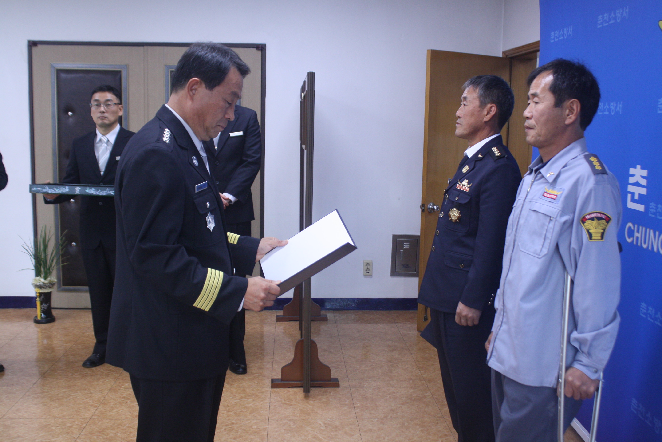 이날 전수식은 새로 임명된 화천전담의용소방대 대장, 부대장에게 임명장을 수여하고 의용소방대 대장·부대장으로서 정식활동을 시작하도록 했다.