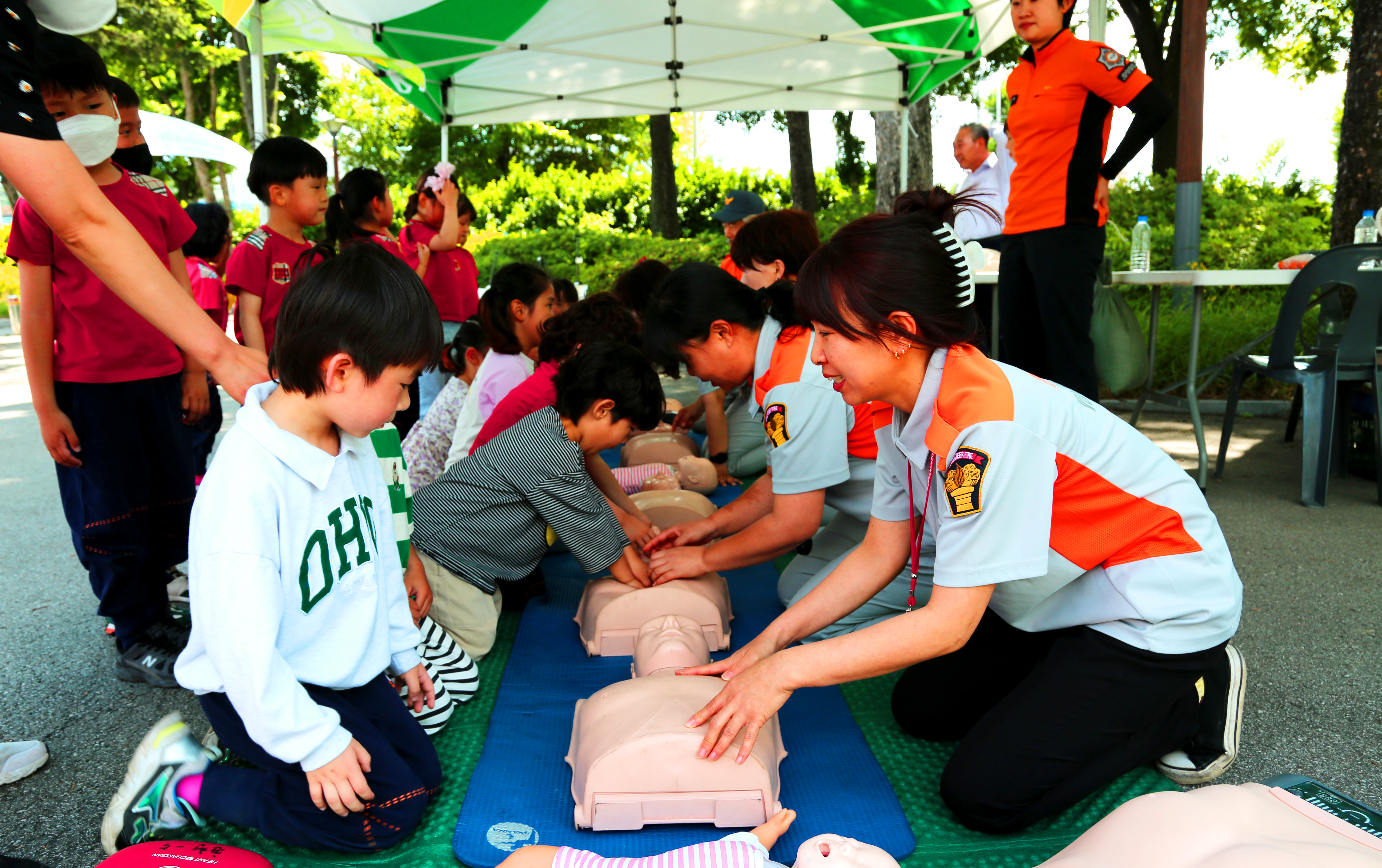 주요 내용은 ▲심폐소생술 교육 및 실습 ▲자동심장충격기(AED) 사용법 ▲주택용 소방시설 설치 안내 ▲화재 시 대피 요령 및 소화기 사용 방법 등이다.