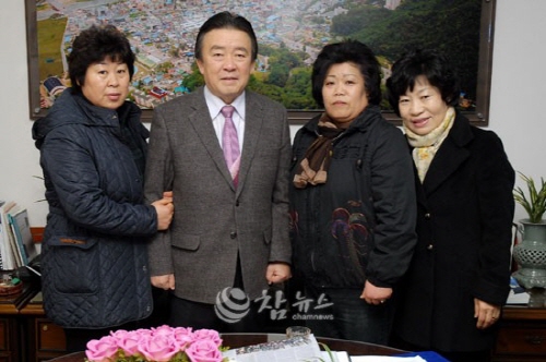 【양구=참뉴스】강원 양구군여성의용소방대(대장 박명숙)는 16일 양구군청을 방문해 환경정화활동 우수상 수상으로 받은 시상금 50만원을 이웃돕기 성금으로 사용해 달라며 전창범 양구군수에게 전달했다. (사진=양구군청 제공)