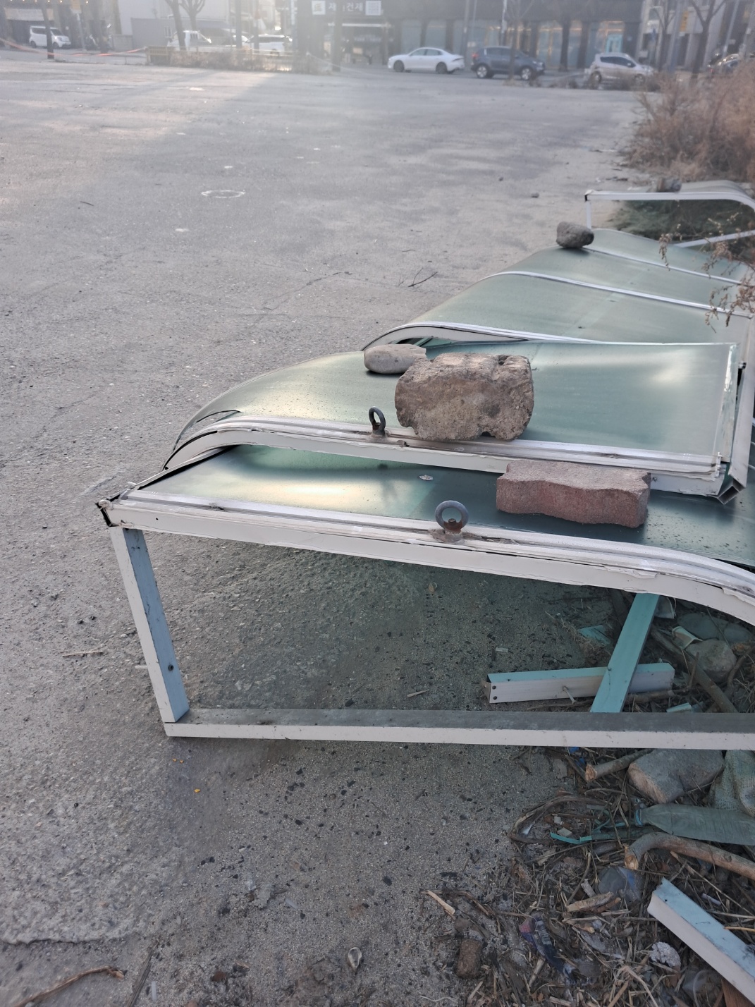 춘천에 계신 어머니께 전화가 와서 들어보니 오늘 바람이 많이 불어서 사진의 ;지붕이 다 날라갔다 합니다. 다행히 다친 사람도 차량이 없었지만 저 큰 게 에어컨 줄에 걸려 사설업체에 전화하니 처리가 곤란하다하여 혹시나 싶어 119에 전화하니 소방관님들이 출동하셔서 처리해 주셨다고 합니다. 어머니는 사설업체는 안된다 하고 혹시나 저 큰 게 떨어져 지나가는 사람이 다칠까 걱정이 많았는데 바쁘신 와중에 빠르게 출동하여 처리해주셔서 정말 감사합니다.