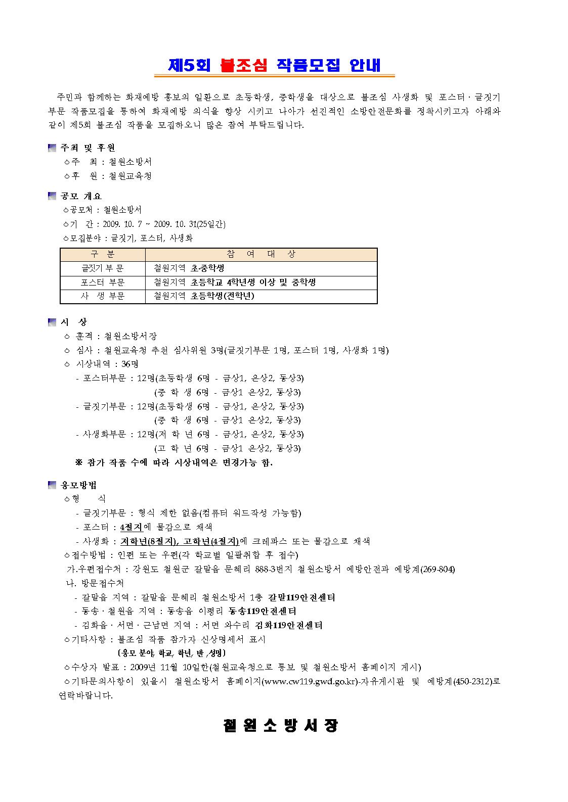 2009년도 불조심 작품공모 안내
