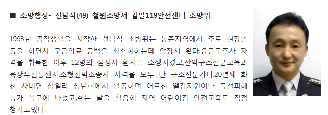 소방위 선남식 강원목민대상 수상자 선정