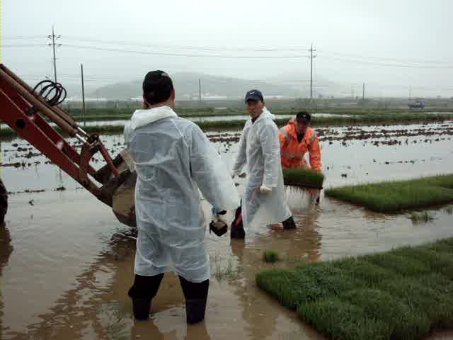 동송119안전센터장 박상일외 갑부 직원은 비가오는 날씨속에서도 일손 부족으로 모내기 모판을 나르지 못하던 고태석씨댁 논에 가서 모판을 날라주며 농촌 일손돕기를 하였다.