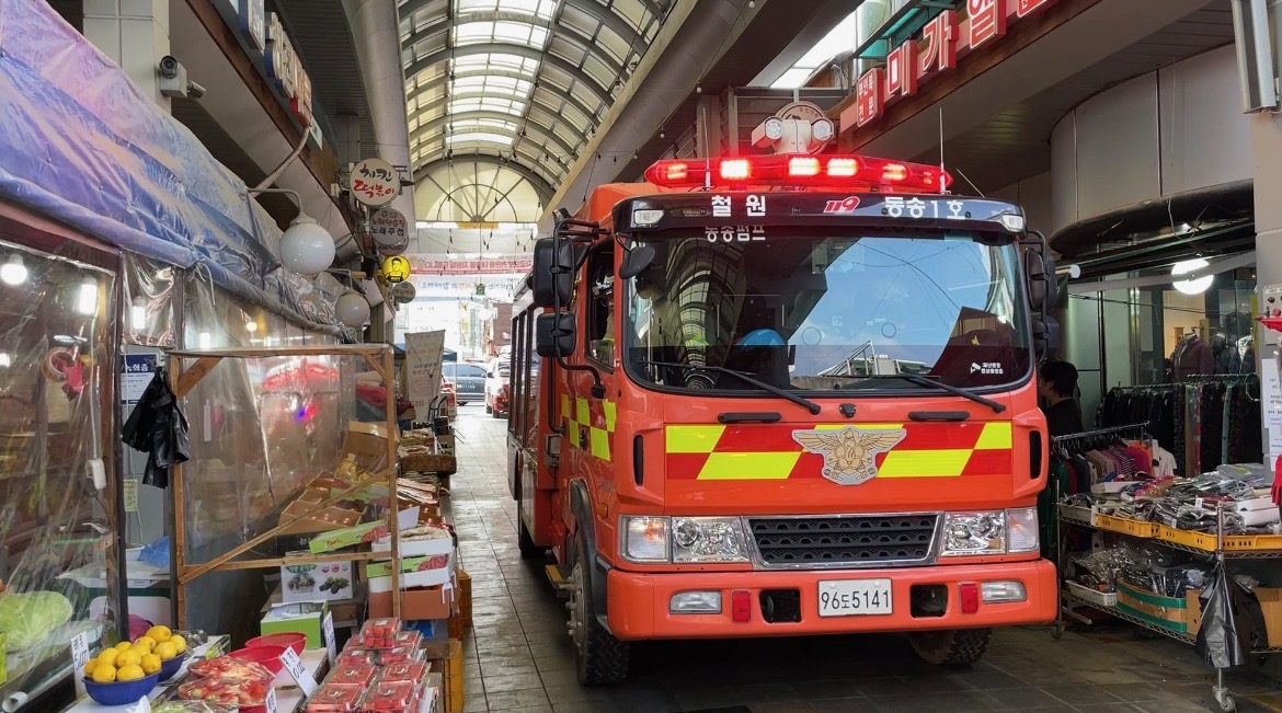 동송전통시장에서 소방차 길터주기 훈련 및 화재예방 캠페인 실시