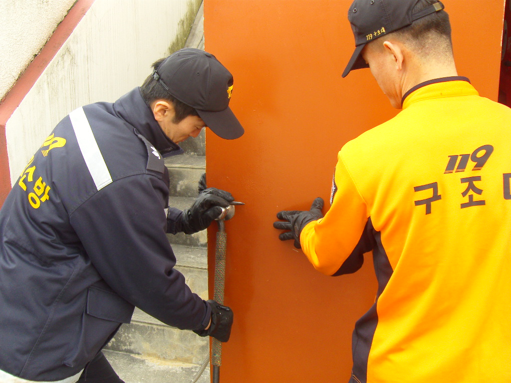 동해소방서 구조대 부대장 임덕 외 2명(임한혁,김광규)는 1월 30일 동해소방서 실내 공사로 인해 버려진 현관문을 활용하여 도어록 잠금해제 숙달훈련을 실시하였습니다.