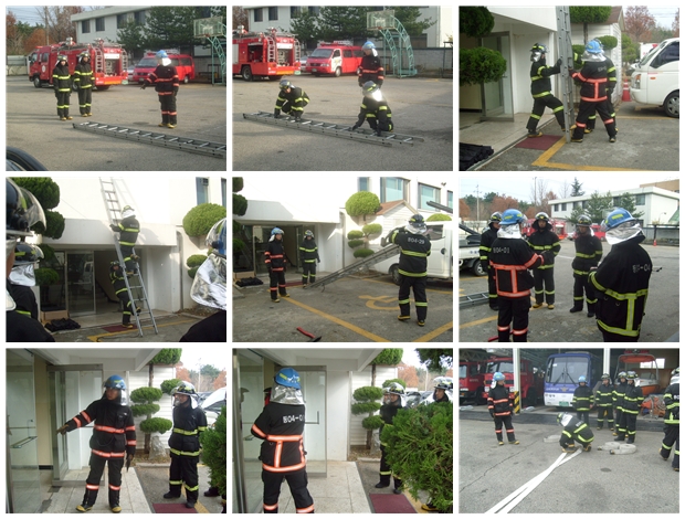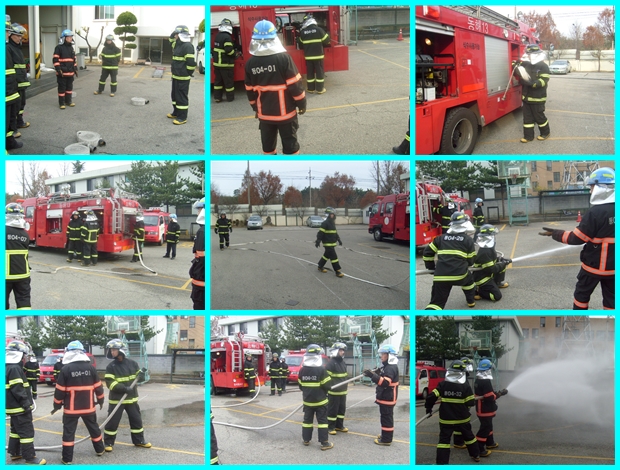 저번 훈련에 이어 이번 교육은 방수 및 산화장비 방수, 사다리 전개,지지 파괴를 실시하였습니다