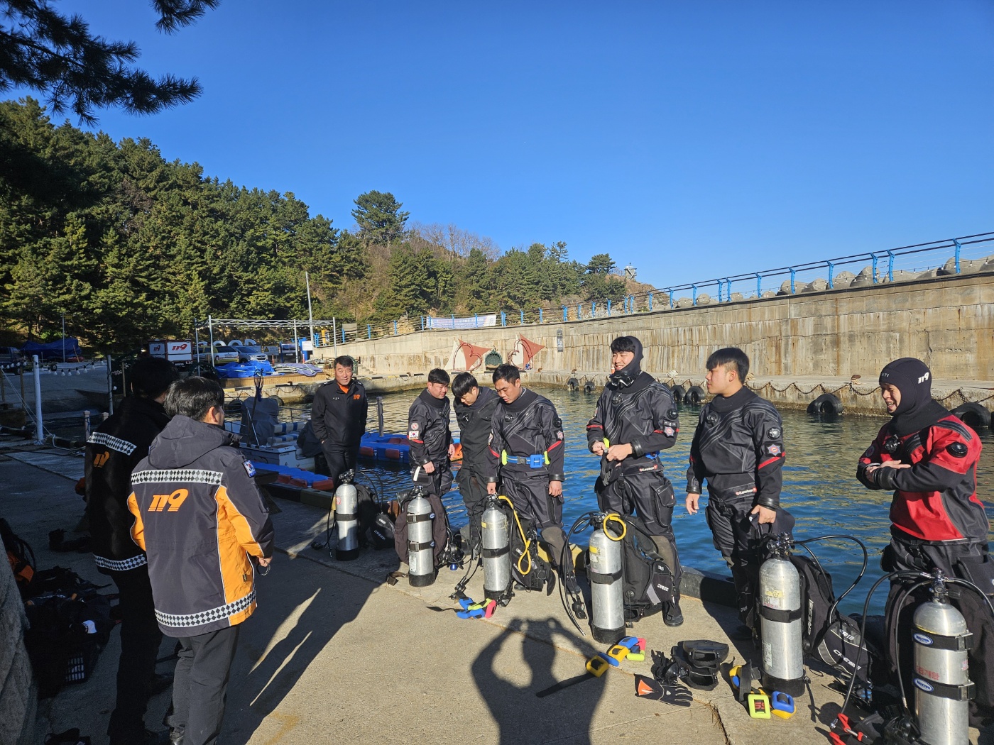이번 훈련에는 드라이슈트 착용법, 백마운트(BC) 장비 세팅, SMB(표면 마커 부이) 활용 숙달 등 실전과 같은 훈련 프로그램이 진행됐다.