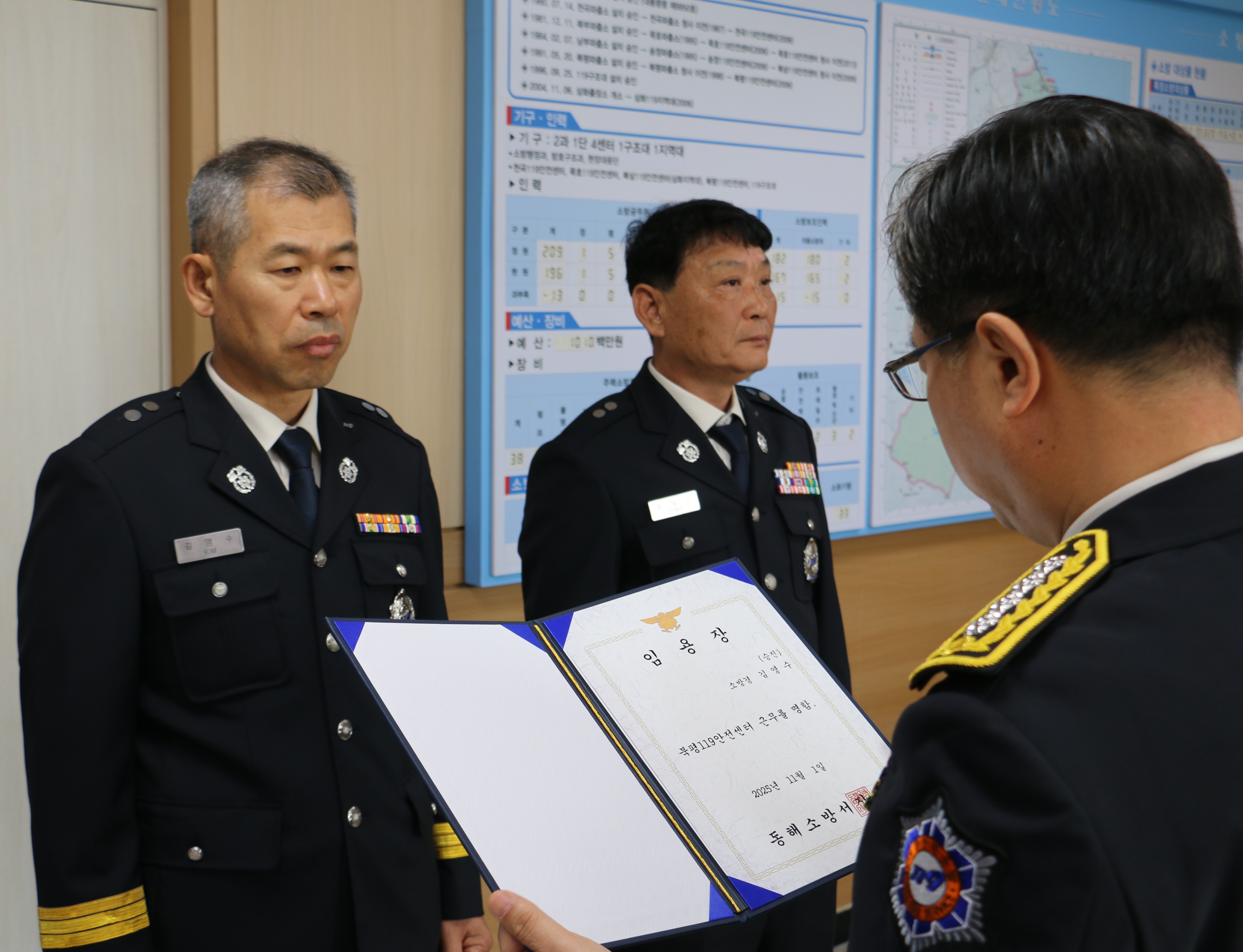 동해소방서, 소방경 승진 소방공무원 임용장 수여식 개최