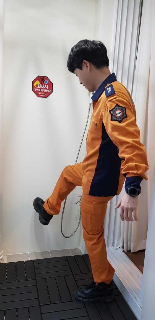 물건을 치우고 화재시 경량칸막이를 힘껏 뚫어 소중한 가족을 지키세요!