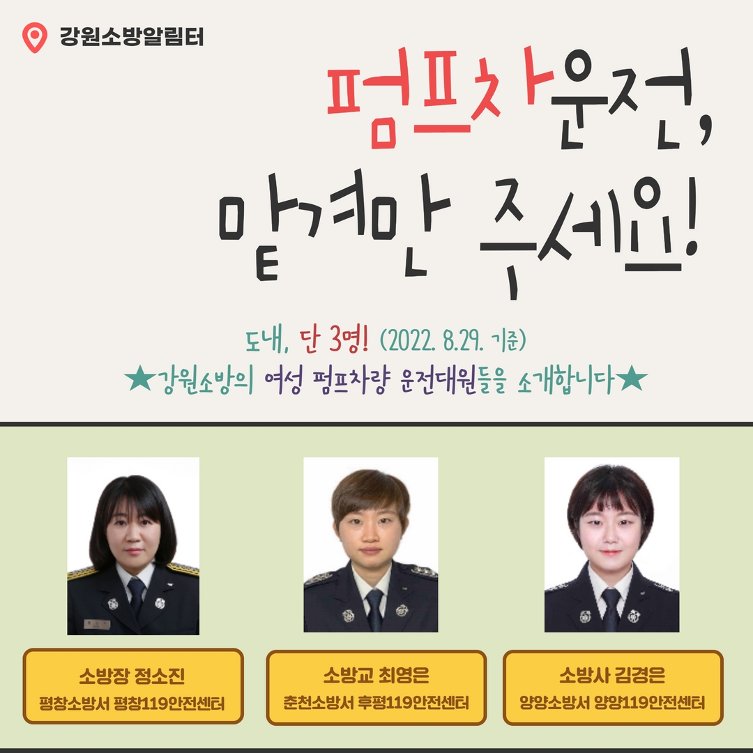 강원소방 「여성 펌프차량 운전대원 소개」카드뉴스