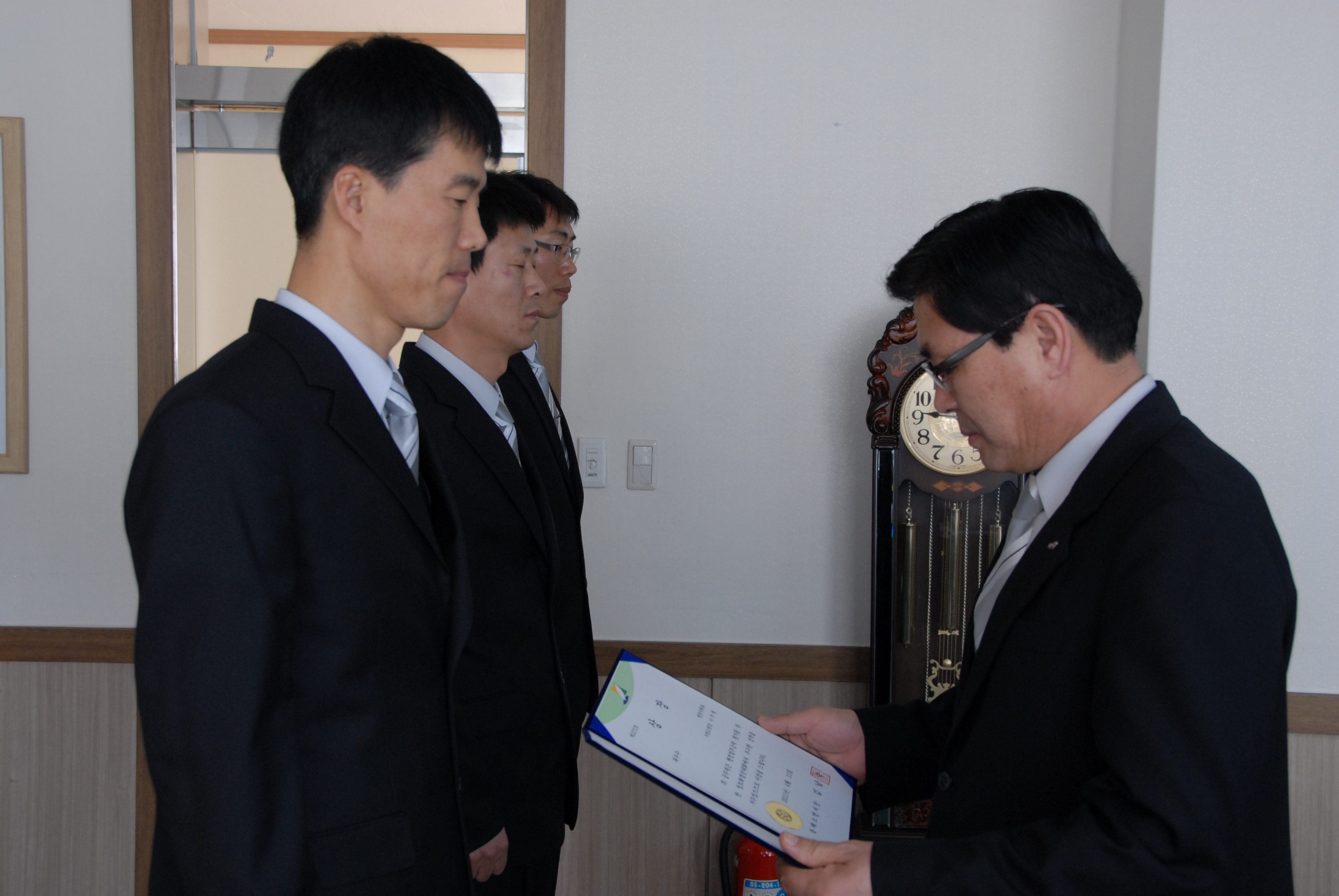 동해소방서(서장 김남숙)에서는 12일 서장실에서 지난 4월1일 개최한 동해소방서 정보화능력 경진대회에서 우수한 성적을 거둔 4명에게 서장표창을 수여하였습니다.