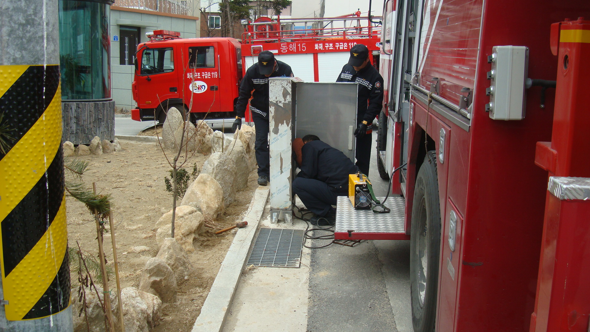 묵호관내 비상소화장치함 수리부분이 있어 구조대에 요청하여 구조대 박주용 팀장님이 작업하여 수리완료되었습니다.