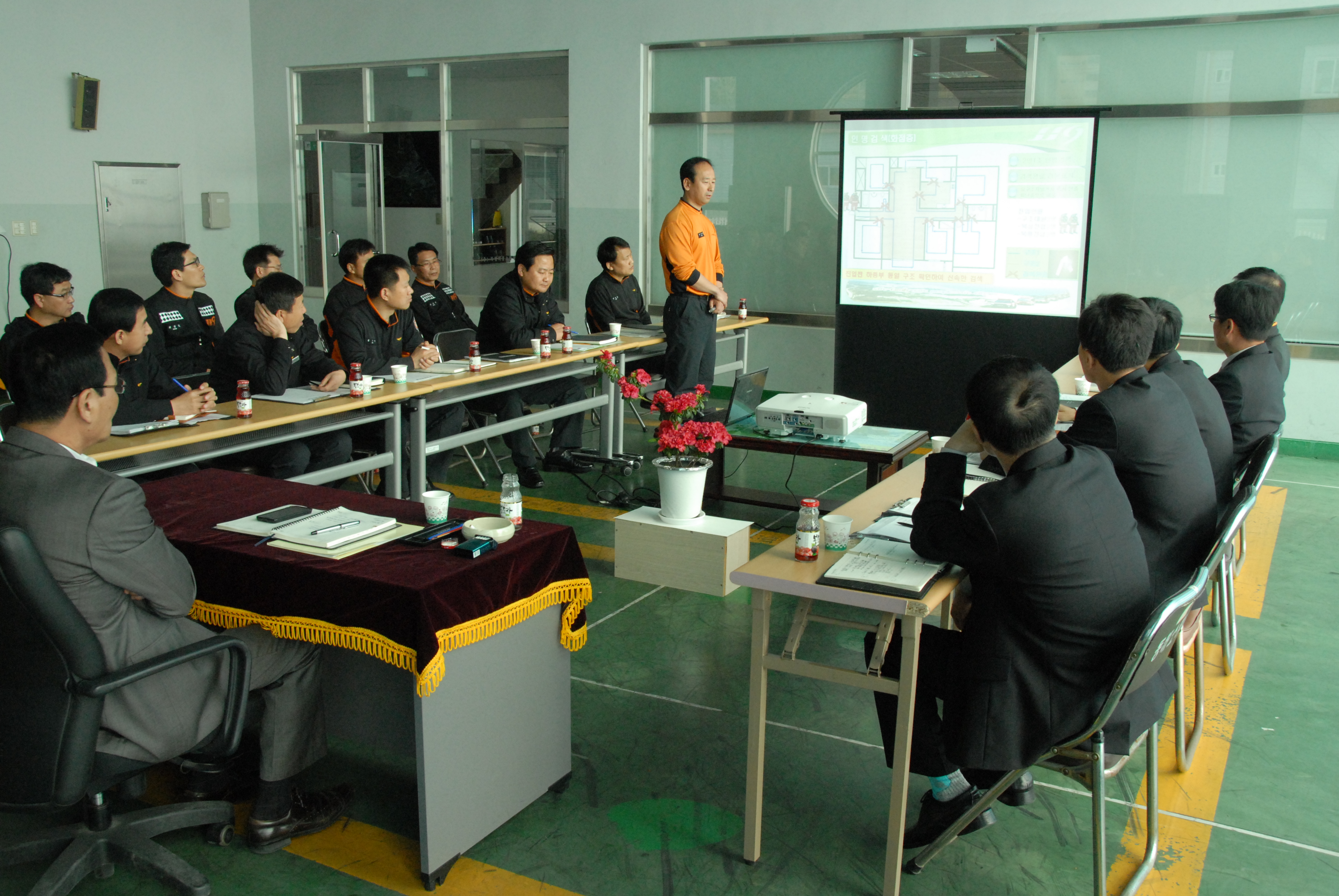 영상도상훈련을 통해 화재위험요소 및 취약대상, 출동시 제약요소, 인명대피대책 강구등을 미리 파악하여 유사 긴급상황발생시 신속한 대처를 위한 방안을 모색하였습니다.