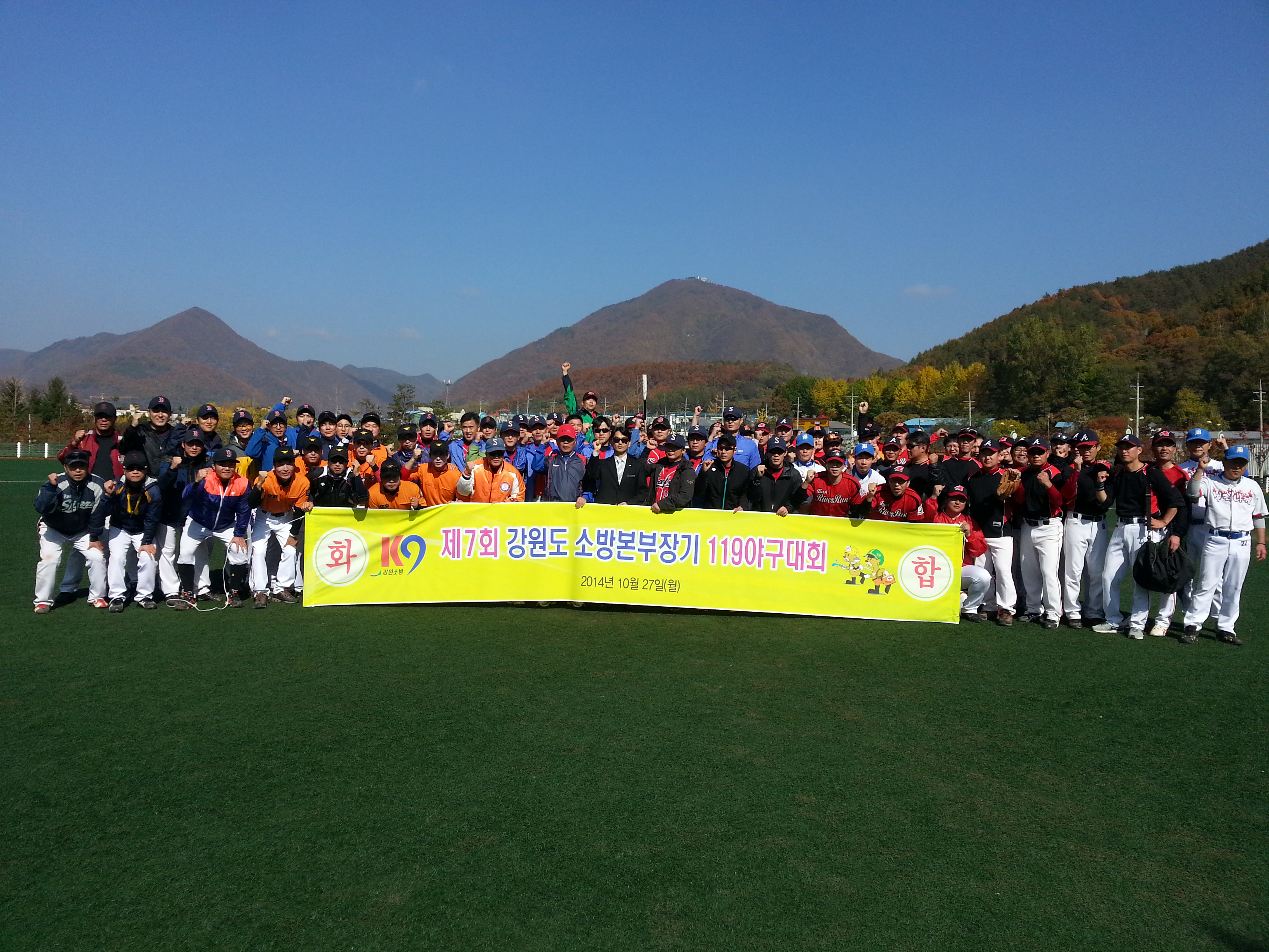 여명이 참여한 가운데 개최된 제7회 강원도 소방본부장기 소방공무원야구대회에서 영광의 우승을 차지 하였다.