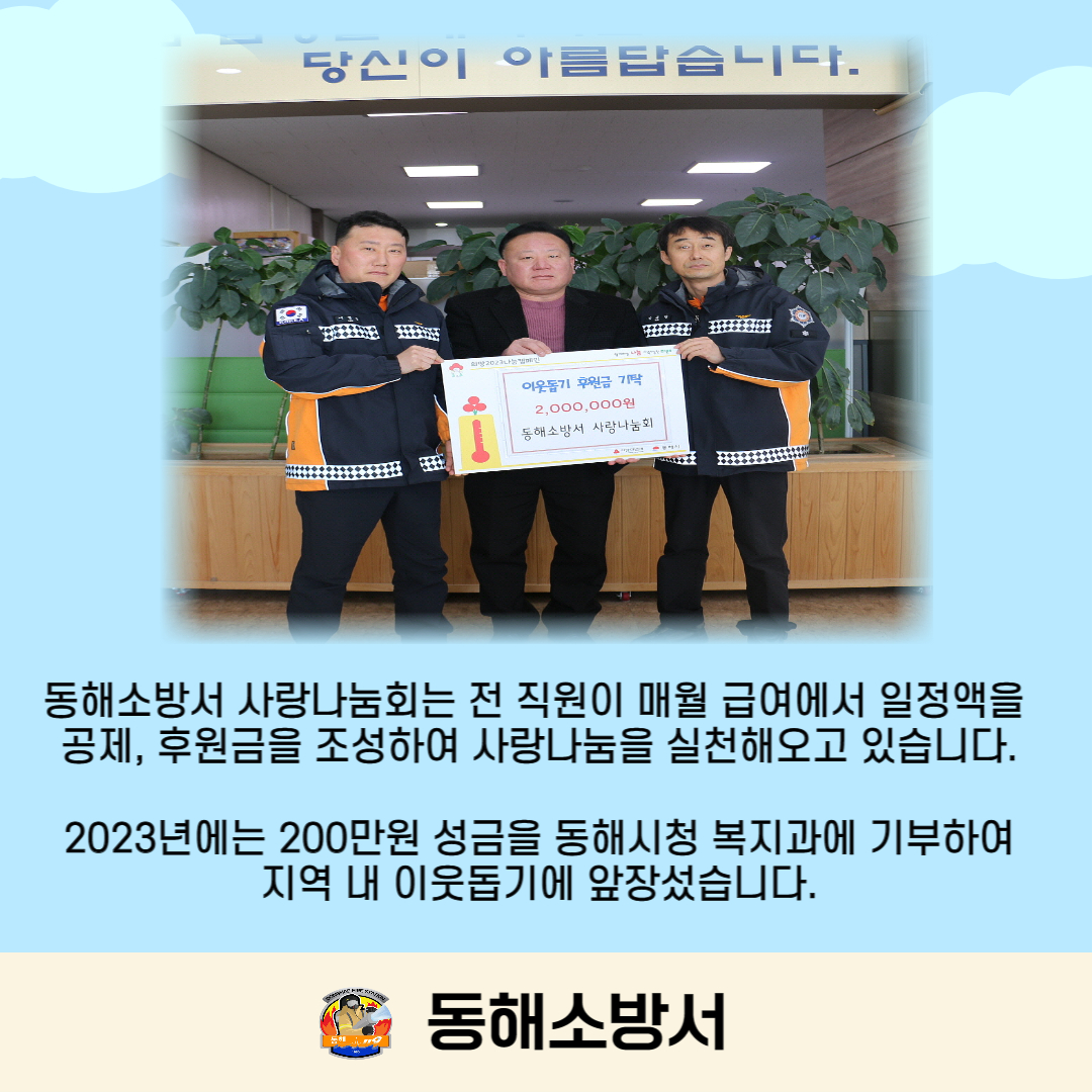 동해소방서 사랑나눔회, 지역사회 사랑나눔 실천