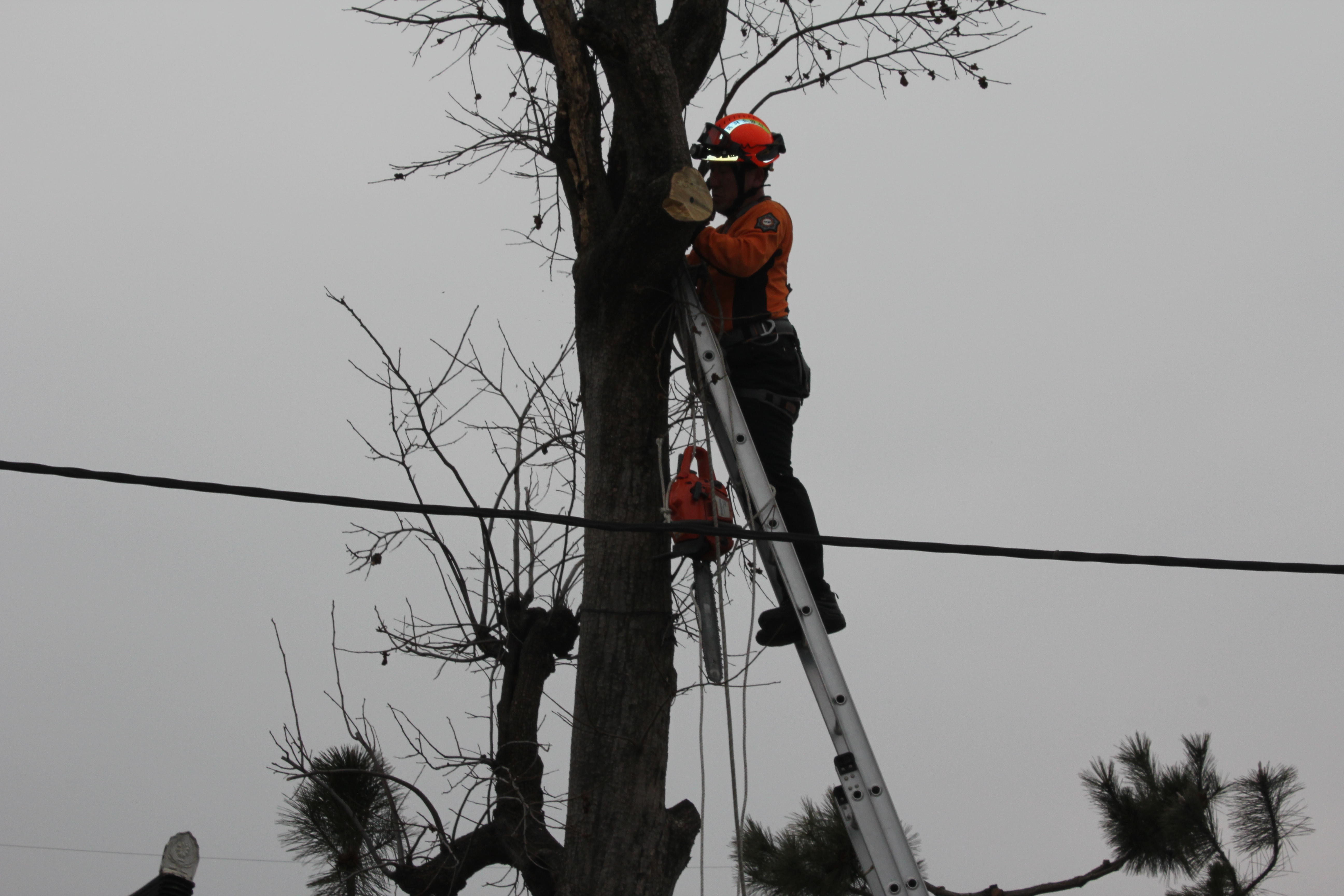 직원이 오셔서 고목 감나무를 제거 해 주셨습니다