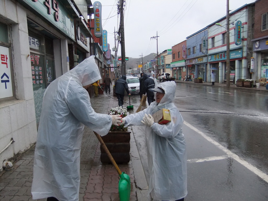 둔내면 일대 물청소를 실시하였습니다.^^