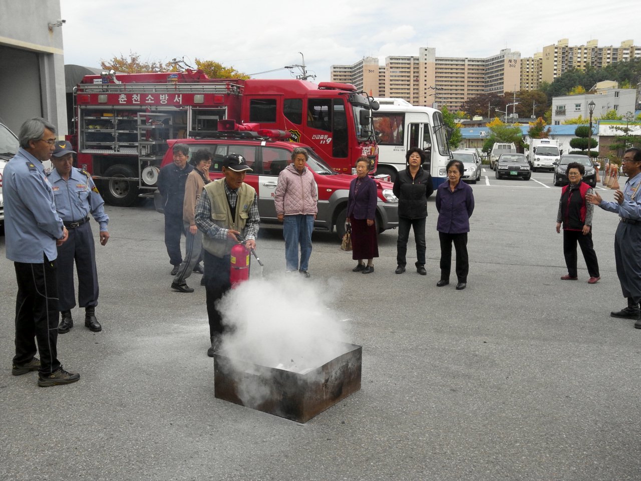 춘천의용소방대(대장 이돈균)에서는 10월23일 춘천소방서에서 후평1동 화재취약지구 14가구에 소화기와 단독형 연기감지기를 전달하였습니다. 춘천의용소방대에서는 소화기 사용법과 화재시 대피요령을 교육하고 화재없는 안전한 도시를 만들것을 약속하였습니다.