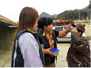 강림여성의용소방대(대장 장주옥) 2012.4.19(목) 강림면내 독거노은 13가구를 찾았습니다.정성껏 준비한 콩죽을 전달해드리고 말벗도 되어드렸습니다.