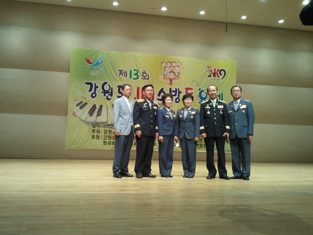 흥업여성대장오오석(강원도연합회장)은 지난 6월15일 강원대학교 백령아트센테에서 1시부터 열린 제13회 강원도119소방동요제에 다녀왔습니다.강원도 소방본부(본부장 오대희) 주최로도내 13개 소방서 유치부 초등부 26개팀이 참가하였습니다.학생및 학부모와 내빈 2000여명이 참가해 백령아트센터 1,2층을 가득 메웠습니다.우리원주는 최우수상 서강어린이집"동물소방대" 우수상초등부 치악초등학교"불꽃"으로 아쉽게 대상을 차지하진 못했지만 너무 귀엽구 잘하였습니다.대상엔 산호유치원과신철원초등학교에게로 돌아갔습니다.매년 원주에선 좋은 성적을 거두고 있습니다..내년을 기약하며...