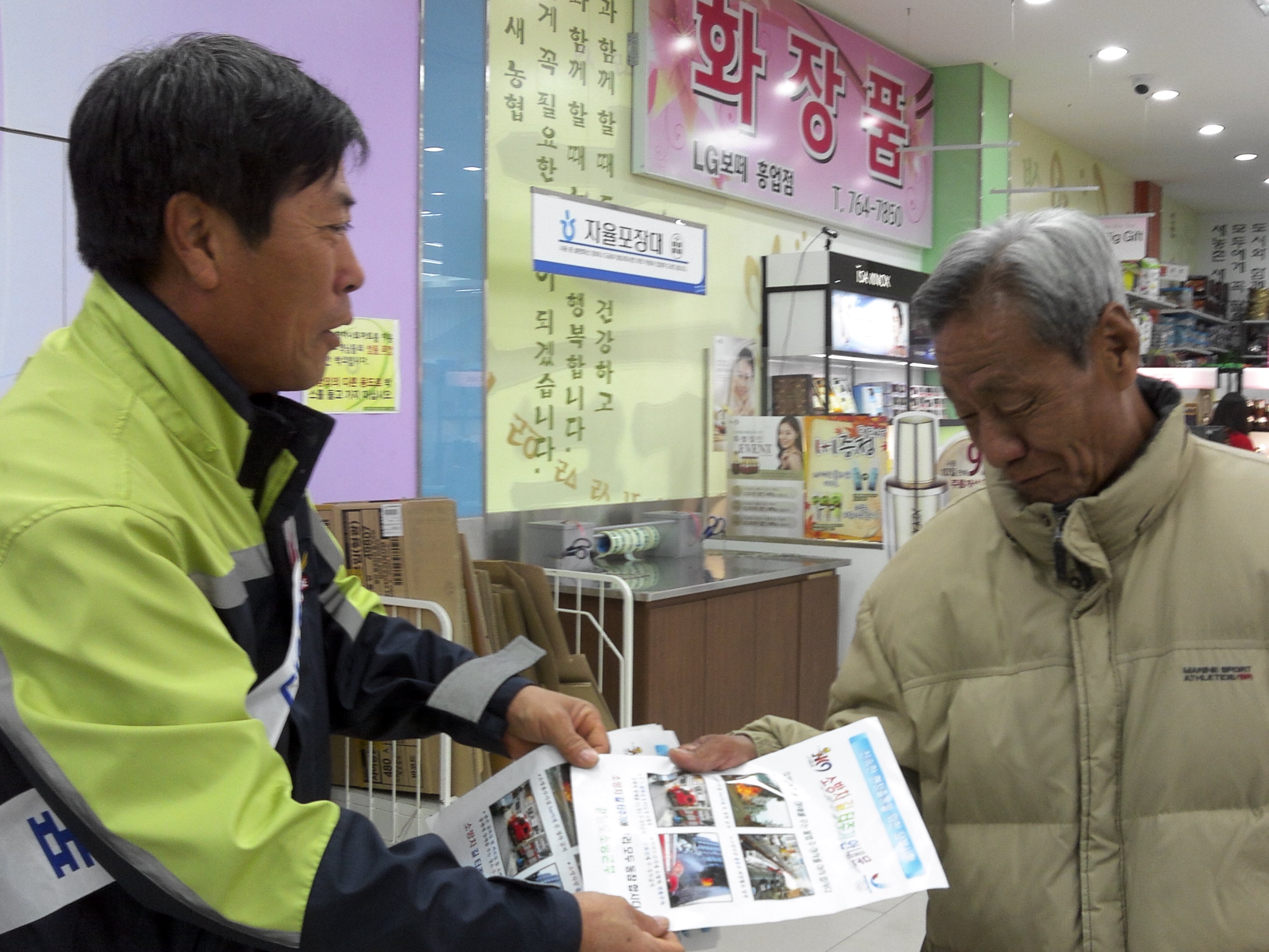 이 번 캠페인은 남원주농협 하나로마트 이용 고객 및 직원을 대상으로 화재예방 및 소방차 길터주기 전단지를 배포하였으며, 흥업의용소방대 김성철대장님도 함께 참여해주셨습니다.