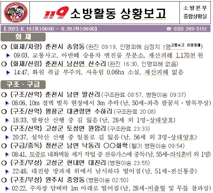 119 소방활동 일일상황보고(6.20.화) 06:00